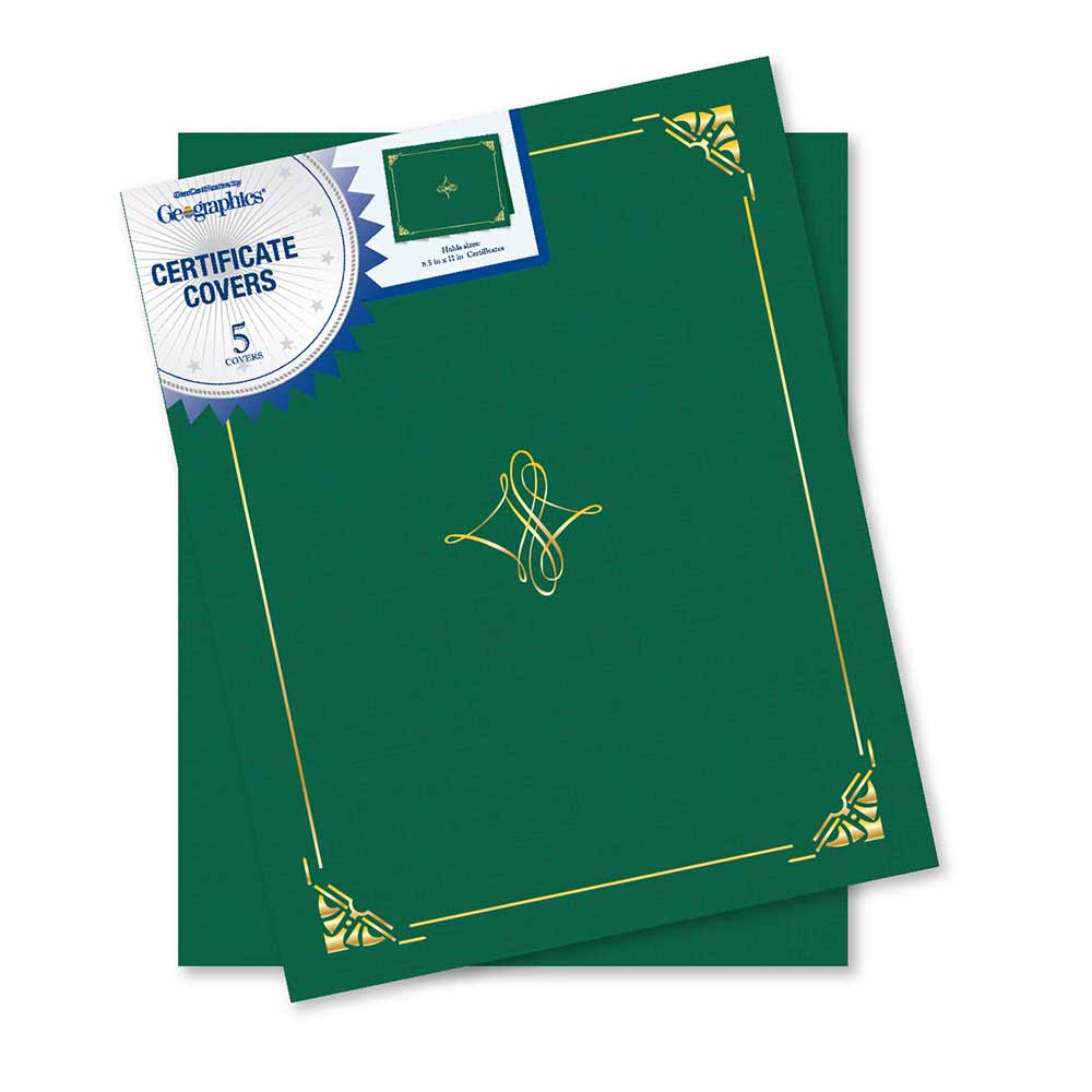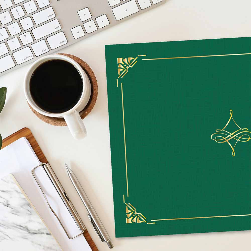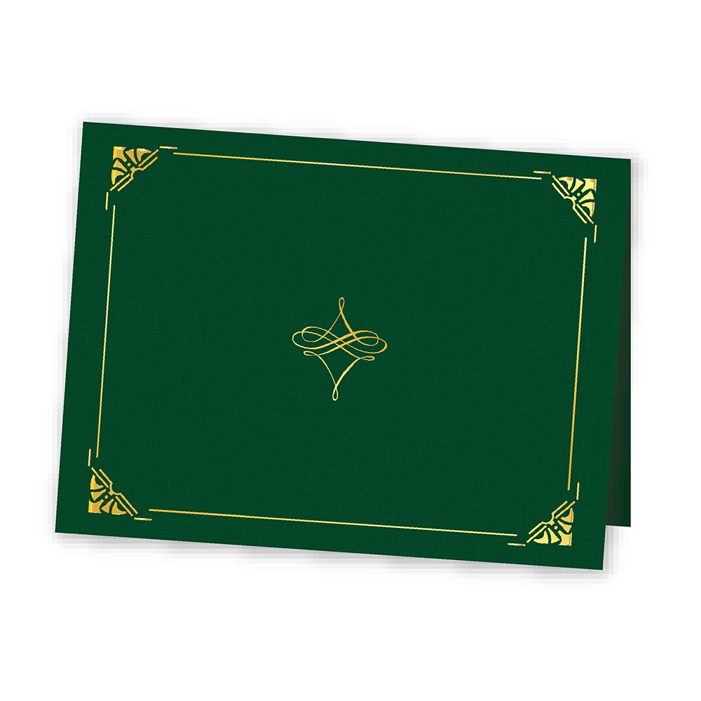 Art Deco Hunter Green Certificate Holders Linen Gold Foil, 8.75″x11.25″ by Geographics®