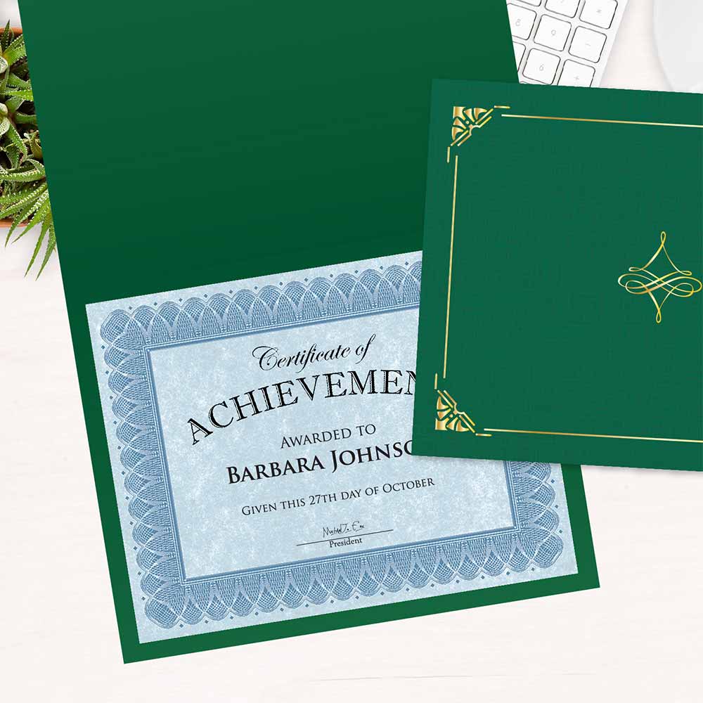 Art Deco Hunter Green Certificate Holders – Key Features: